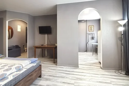 Двухкомнатная квартира в новостройке, около Макдоналдс. Дом только сдан в эксплуатацию. Хороший новый ремонт, техника и мебель. Есть все необходимое для краткосрочного проживания (ЖК ТВ, СВЯ, Холодильник, Утюг, Фен, постельные принадлежности и посуда). Рядом Макдоналдс, Вокзал, несколько магазинов, сквер. Удобная развязка в другие районы города. Спальные места 2+2 (двухспальная кровать, двухспальный диван). Стоимость от 70 руб./сут. Стоимость зависит от количества гостей и дат найма. В отдельных случаях требуется задаток.