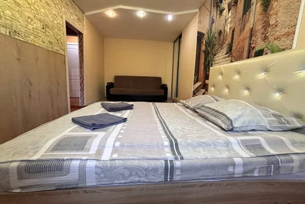 The historical center. There are many cafes, shopping malls, and bank branches around. The Vashchenko Art Gallery, the Lenin Library, the Sports school, the GCC, the visa application center, the palace and park ensemble. It's all within walking distance from our apartment.